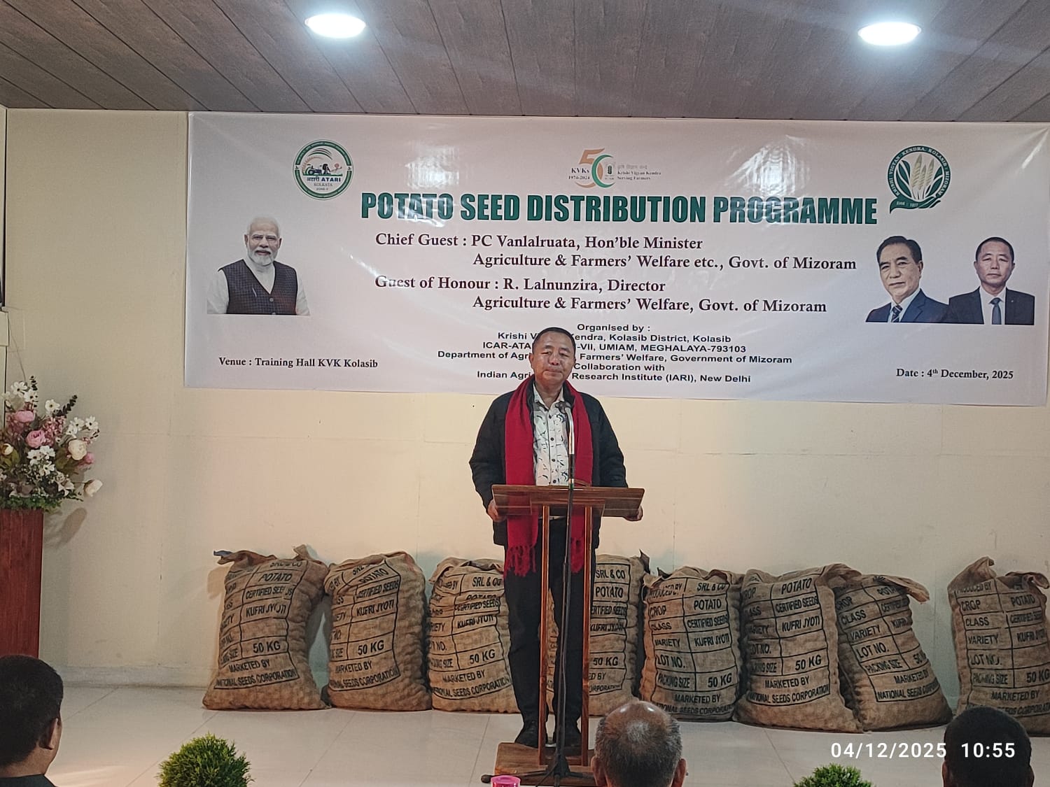 Under IARI NEH Programme 50 quintals of Potato tuber variety kufri Jyoti was distributed to farmers by Shri PC Vanlalruata, Hon'ble Minister of Agriculture & Farmers' Welfare, Government of Mizoram.